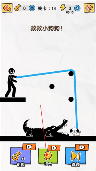 2、根据关卡要求来扯动火柴人完成任务