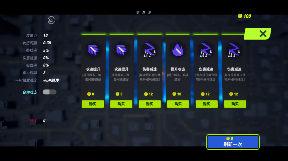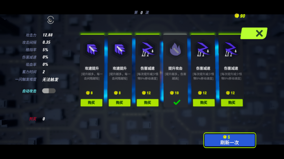 3、起始金币100,选择想要购买的加成。