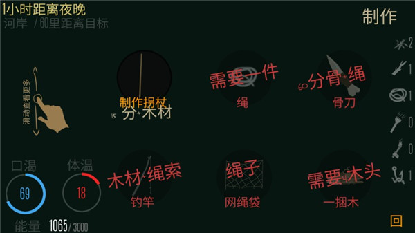 4、虽然界面很单调,但所囊括的操作内容却包含了野外求生的一切要素,可以说是一款看上去简单,思考起来却面面俱到的游戏