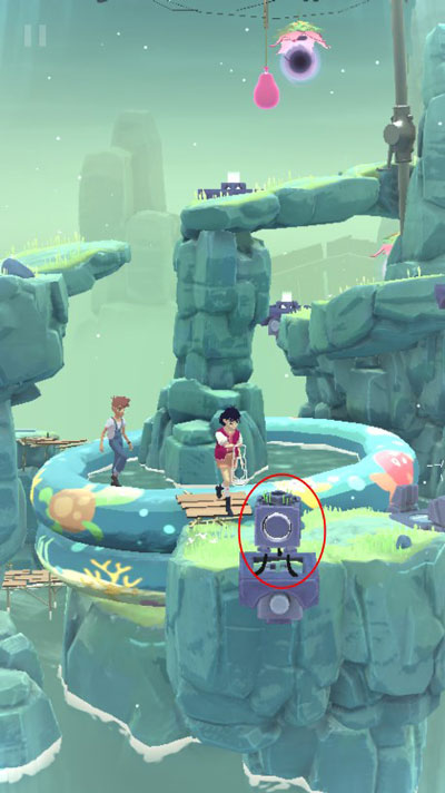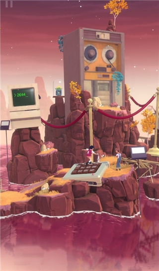 2、游戏中拥有不同的个岛,每个岛都有环形山路,游戏人物最终的目的地是山顶。玩家所能做的就是通过滑动屏幕左右时间的正常流逝和回溯,在这个过程中寻找特殊的时间点解锁机关。
