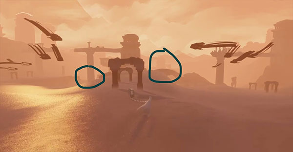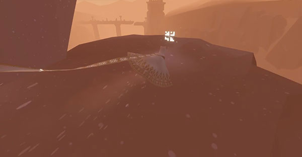 身着兜帽长袍茕茕孑立的寂寞旅人自沙漠中醒来,唯一的目标便是远方的山。在那座山上有一道光,直通天际。旅者认为那里是圣人的所在地,为了朝圣踏上了未知的旅途。当《风之旅人》的玩家最终一步步迈向终点时,主角的行动会逐渐迟缓,直至躯体倒在雪地中,而此时,众神出现,召唤他并使他复活,新的旅途也由此开始。