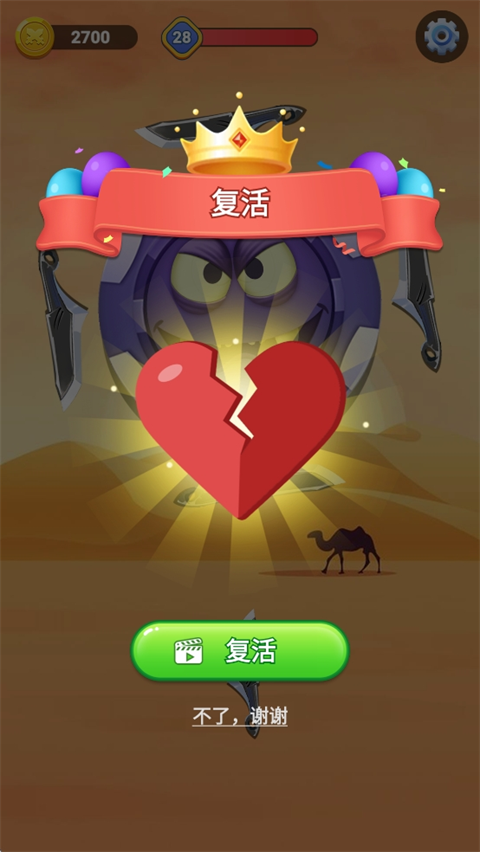 2、通过点击屏幕来发射飞刀,命中目标后会扣除BOSS相应血量。
