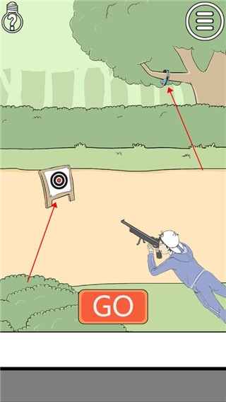 3、点击标靶,将标靶向前移动。拾取树上的耳机,给主角戴上。然后点击GO,主角枪枪命中靶心顺利过关!