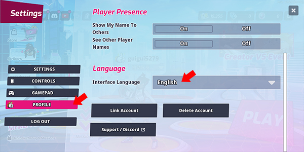 2、来到Settings界面后,接着点击Profile选项,看向右侧往下滑,将Interface Language语言更改为简体中文