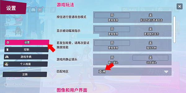 2、之后往下滑动,在游戏玩法栏目下,找到匹配地区选项并根据自己需求进行切换即可