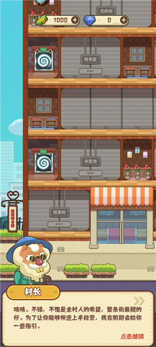 1、在大厦里建设专属店铺,招揽更多的顾客,满足村民们的心愿,大力发展村里的婚恋事业,拯救魔幻村的人口大危机。