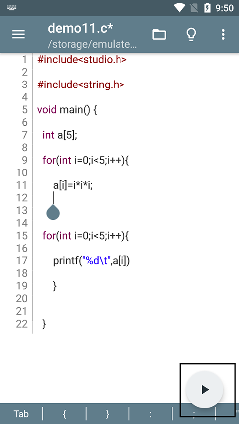 3、代码保存后,点击下方圆形按钮,即可运行程序。