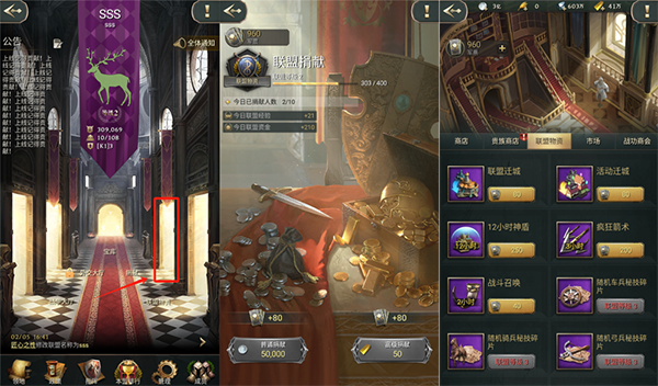 2、城市建筑可以提供金砖和徽章收益加成,需要盟主、副盟主、内政官前往联盟宝库分配。