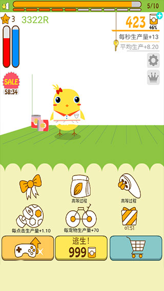 6、收集小鸡罐头可以在“游戏”处为宠物的生产量加速。