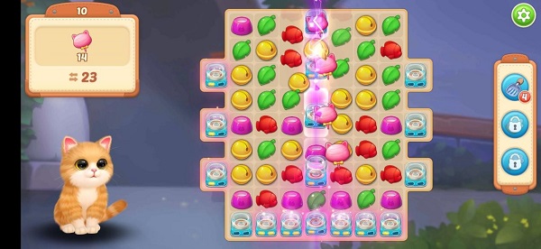 在玩家进行消除游戏的同时,旁边不仅会有呆萌小猫在旁玩闹,成为你继续闯关的动力。还能在闯关之余,让玩家们体验剧情,收获全新的小猫,给这些小猫“云铲屎”“云换衣”,是不是比现实里养猫要好多了呢?