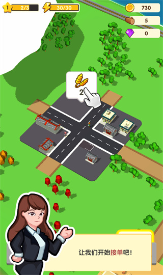 游戏中会指出村庄生产的物品,玩家需要将物品送到城市中,由于道路不通,玩家需要点击游戏下方的修路来进行修路,玩家可以根据需求来选择路况来进行修路,其中玩家需要点击或者拖拽来进行铺路,完成铺路即可进行接单,接完单后玩家需要选择一个运输工具来进行运输,玩家还可以按住游戏下方的加速按钮来进行持续加速,订单完成即可领取游戏奖励。