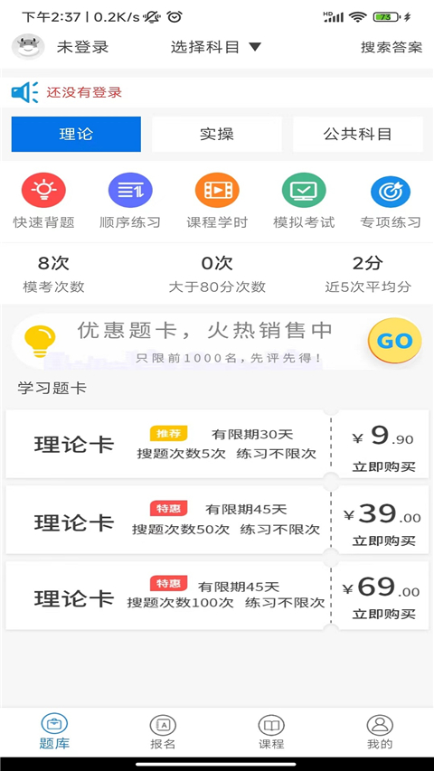 提供背诵考题、专项练习、顺序练习等多种模拟考试功能,帮助用户全面备战考试。