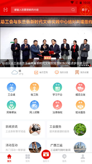 广西工会app是一款专门为广西人民职工会员的服务平台,软件在界面上以及操作上进行了大量的优化以及改进,让用户使用起来更爱得心应手。同时这款软件以移动互联网为主要通道,涵盖招聘、法律、帮扶、二手交易、优惠活动、新闻资讯、政务党建等方方面面内容,为全省广大职工会员提供更加普惠化、精准化的线上服务。此外,广西工会app还拥有工会通、法律维权、互动活动、网上招聘、服务地图等等多种多样功能,可以帮助用户更好的工作生活,而且还为用户提供国内热点新闻、天津市总工会要闻、基层工会动态,将特色内容及时的呈现,让用户可随时随地的浏览新闻。不仅如此,广西工会app还会不定期举行如技能学习、就业工作、法律援助等其他社会服务,给会员朋友们一个全方位的公共服务平台。