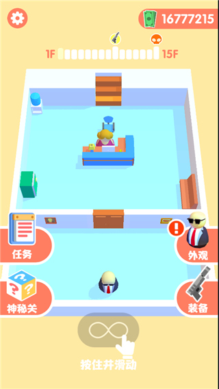 是特工就上一百层中文版是一款有趣的休闲益智类游戏。在该款游戏当中玩家们将会扮演者一名优秀的特工进行体验的,接下来玩家们需要做的便是不被抓住的情况下顺利过关即可。其中在关卡的设定上游戏准备的还是十分丰富的呢,且每一关卡都具备特色的障碍以及陷阱供你挑战,具体的在这就不细说了,玩家们可以自行去游戏中进行体验。而在操作上游戏设计的还是十分好上手的呢,只需要用户们在拖动人物移动即可,可以说单手也能玩转该款游戏呢,至于画面上给人的感觉还是不错的,游戏采用的是3D卡通的画面风格进行绘制的,再搭配上Q萌的人物形象,相信能给玩家们带来别样的游戏体验。