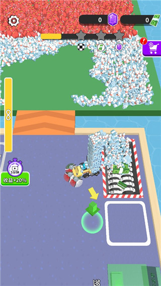 玩法主要是开各种车辆比如扫地机、卡车之类的去收集垃圾,还可以升级车辆和设施来提高效率。每次完成任务解锁新关卡的时候,都有种小小的满足感。游戏里还有一些小技巧可以学,感觉挺有教育意义的,特别是关于垃圾分类这些知识,不知不觉就记住了。