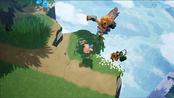 有趣的是,因为地图位于空中浮岛上,存在「落下死」的概念。 所有角色都可以在空中按下冲刺按钮进行空中跳跃,如果被卷入岛屿的坠落中,也可以重新回到地图上。 因此,在岛的周围,就像是在大乱斗中一样,会出现以击飞攻击等方式来进行落下死的动作。