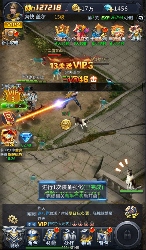 首充和限时礼包的抢购建议大家能拿就拿下,首充可以获得提升战力极大的精美时装,其中首充赠送的经验副本券,是开服提升等级最重要的道具。
