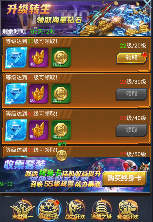 这些都是买了绝对不会亏的奖励,而且前两个只需要钻石即可激活,如果你前几天犹豫,觉得不值,也没关系,你可以多玩玩再决定,因为投资在有效期内激活,都会锁定时间,你不用担心因为晚激活几天就拿不到全部奖励,在有效期内,等你觉得可以投资时,随时都行!