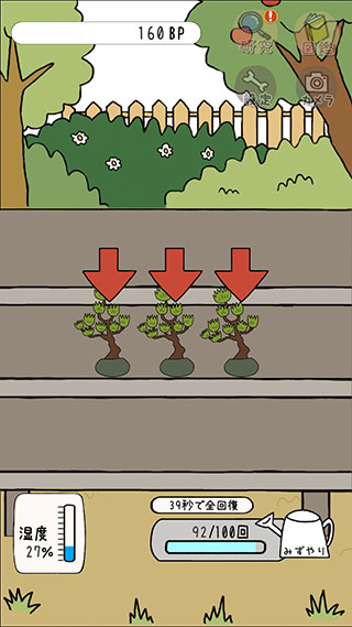 1、首先我们点击并拖动右下角的水壶来为盆栽进行浇水。