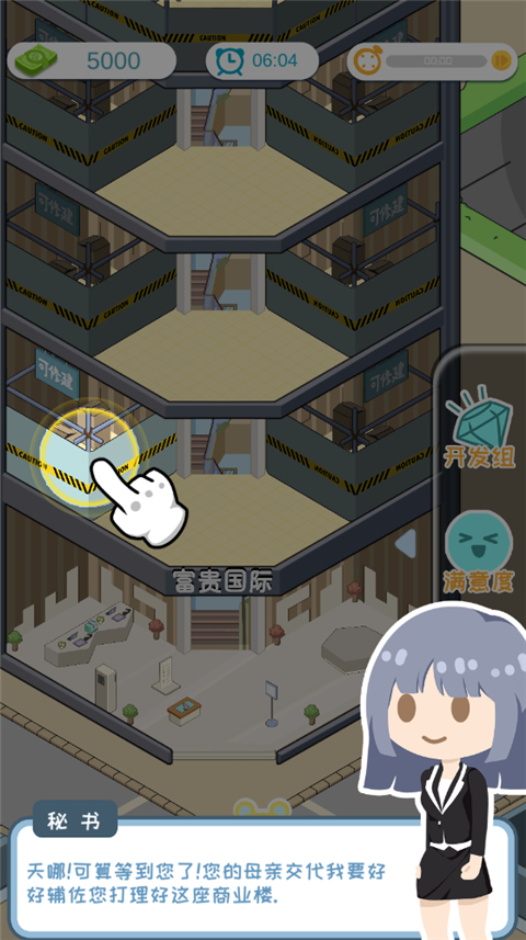 我有一座商业楼官方版是一款非常有趣的经营建设类游戏。游戏在画面上第一眼看有些简陋,人物表现都很抽象,但习惯之后,其实感觉还很不错,从员工的形象再到每个店铺的摆设都非常的有特色。