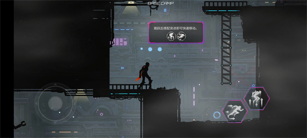 6、如下图,玩家遇到这样的障碍时,玩家可以点击跳跃再点击冲刺即可跳上平台;