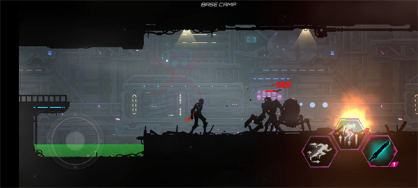 《机战地城》是一款动作闯关手游,背景设定在赛博朋克时代。游戏采用剪影风格,玩家通过控制角色在各种地下城中冒险,挑战敌人并解锁新武器和能力。操作简单,移动和攻击都是一键完成,关卡设计充满障碍和BOSS战,考验玩家的反应力和策略。