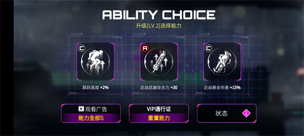 10、当角色升级后还可以在三个能力中选择一个来提升实力;