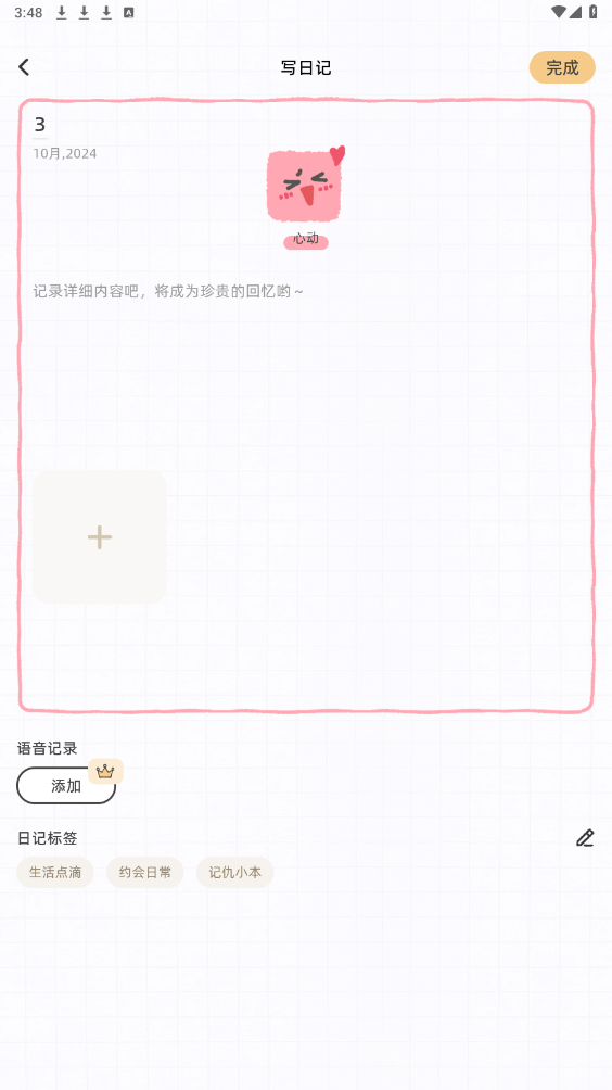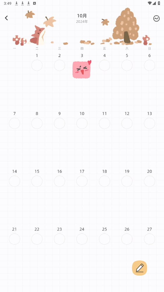 1、可以在已经过去的日期下选择心情或者添加文字。