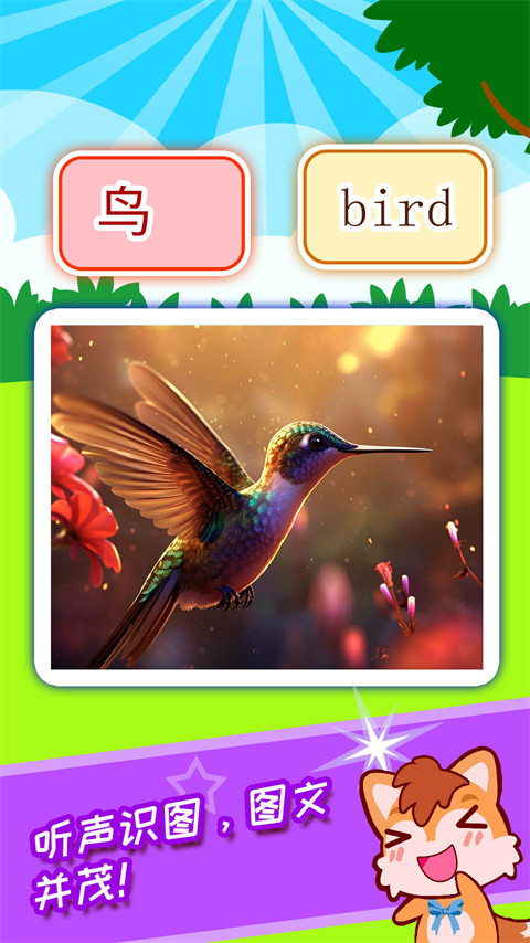 宝宝看图识字app是一款儿童早教学习软件,专为学龄前的宝宝们所设计的,软件中有超多有趣又好玩的基础早教知识,吸引宝宝们的注意力,开发他们的大脑想象力。软件涵盖一些常见的动物、食物、水果、交通工具、风景等多种图片,每一张图片下面都有中英文和配音,都是由真人进行配音,采用看图的方式让宝宝们认识这个世界。一些有趣的简单汉字,激发孩子的创造力和想象力,跟着图片上的配音一起学着说。软件还有可以测试宝宝学习的一些小游戏,吸引宝宝增加学习兴趣,宝宝可以跟着读。