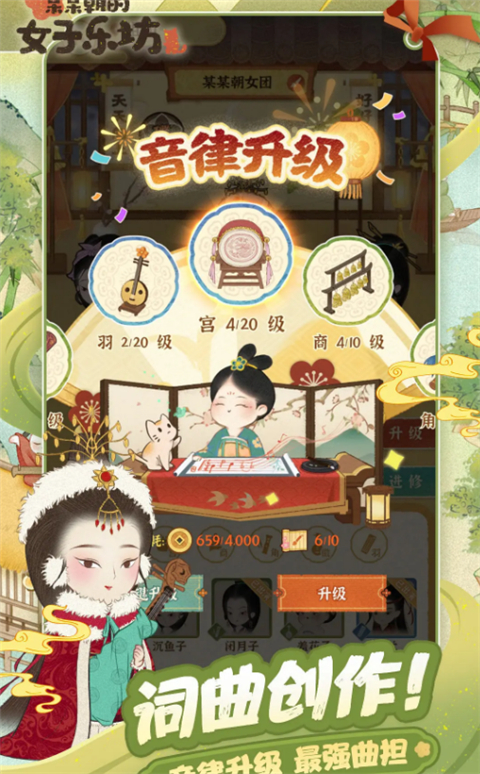 3、【词曲创作】音乐关卡灵感迸发,升级音律培养最强曲担