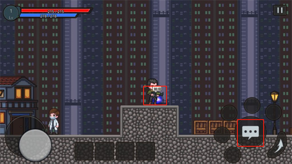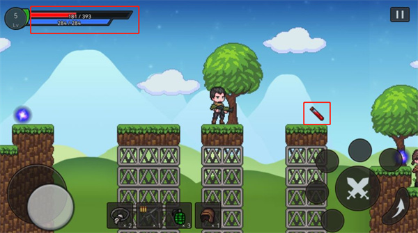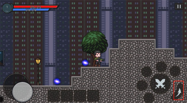 游戏的玩法也十分的简单,玩家只需要通过左下角的方向摇杆进行移动,当遇到敌人时,玩家可以点击右下角按键就可以进行进攻,游戏中玩家需要注意角色的血条,如果没血了玩家可以在游戏中寻找血瓶,触碰血瓶即可加血。