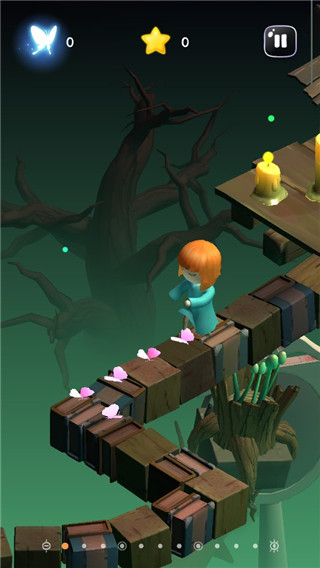 梦行者最新版是一款超现实,慢节奏的益智跑酷游戏,游戏画面采用卡通风格设计清新梦幻,玩家需要控制小女孩独自行动,穿过幽静的黑夜解锁众多谜题成功帮助她逃出自己的梦魇。梦行者游戏背景讲述的是主角是一个患有梦游症的小女孩,偏偏来到了一个不那么正常的梦境,梦境中充满了各种与物理、建筑、思维有关的奇幻谜题,而游戏也随之展开。在游戏中玩家需要帮梦游的少女逃出诡异的梦境,回到现实。玩家需要操控方向帮助她破解各种障眼法,踩着随时会塌陷的砖块,一刻都不能停地奔跑,因为一旦停下,她就会失去平衡掉下一个无底的深渊。同时在梦行者游戏中玩家需要在拐角的砖块点击屏幕,带领少女及时转弯,才能避免踏空而坠毁的噩运,在游戏的过程中,少女需要收集沿路的星星,只有收集到了一定数量的星星才能进入下一关,途中的蝴蝶也是收集的重点对象。在闯关完成后,蝴蝶可以用来抽奖,有可能会获得体力、星星,甚至可以为小女孩更换新的形象。有兴趣的玩家不妨下载体验一下试试看吧!