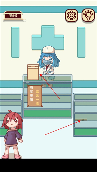 在地面找到五块钱然后进行有奖竞猜,答对题目即可通关。