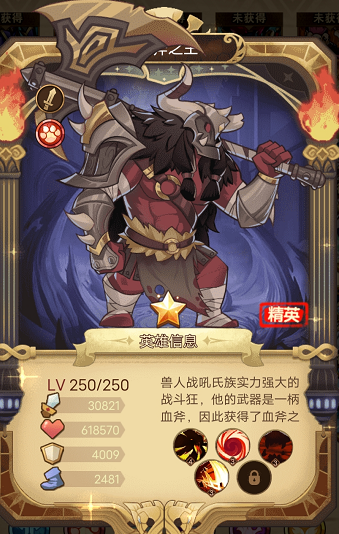 解析:巨斧可以说是前期通关送的最万金油的英雄,有反击,有嘲讽,还肉,击杀目标还能提升全体攻击。可以说是系统送的最良心英雄之一。