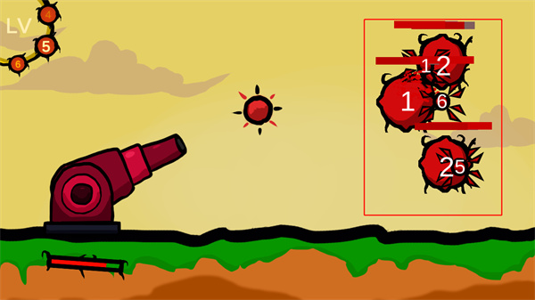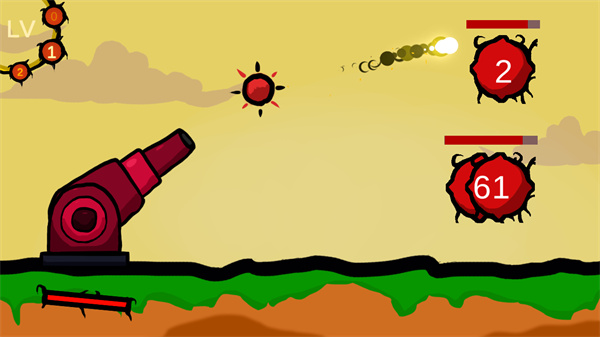 游戏中玩家需要利用手中的大炮,通过点击即可进行大炮的发射来对敌人进行进攻,游戏中每一关卡都是非常有趣的,玩家需要在发射的同时对子弹射击的距离和子弹的轨迹进行计算,才能够更加高效的进行敌人的消灭。