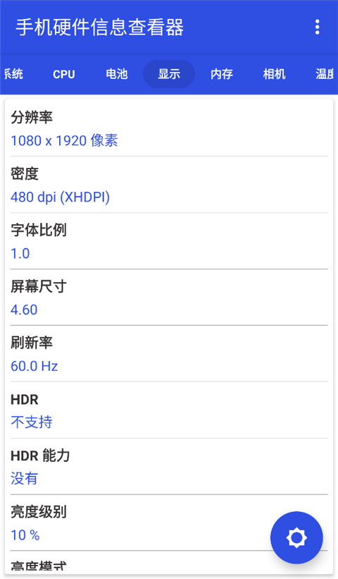 6.查看手机屏幕参数、屏幕分辨率、屏幕密度、屏幕尺寸、屏幕刷新率、HDR能力、亮度级别。