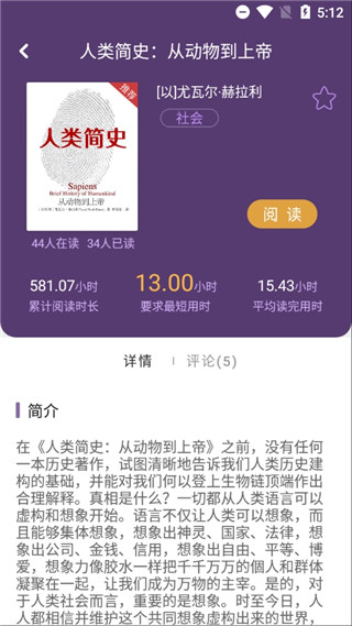 3、打开书籍后,用户能够看到书籍简介和详情