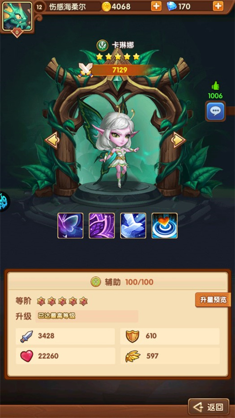 主动技能能在击中敌方前排是降低护甲并且石化,后排时降低攻击并且减缓敌方英雄速度。