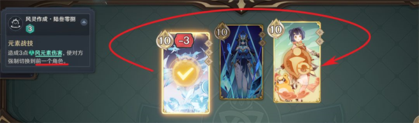 (4)此外卡牌还可以转化骰子(元素调和),丢弃一张卡牌,将一个骰子的属性转化为出站角色的属性