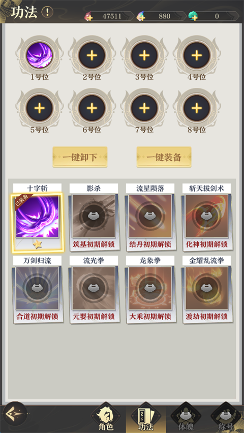 2、提升境界解锁更多技能提升战力。