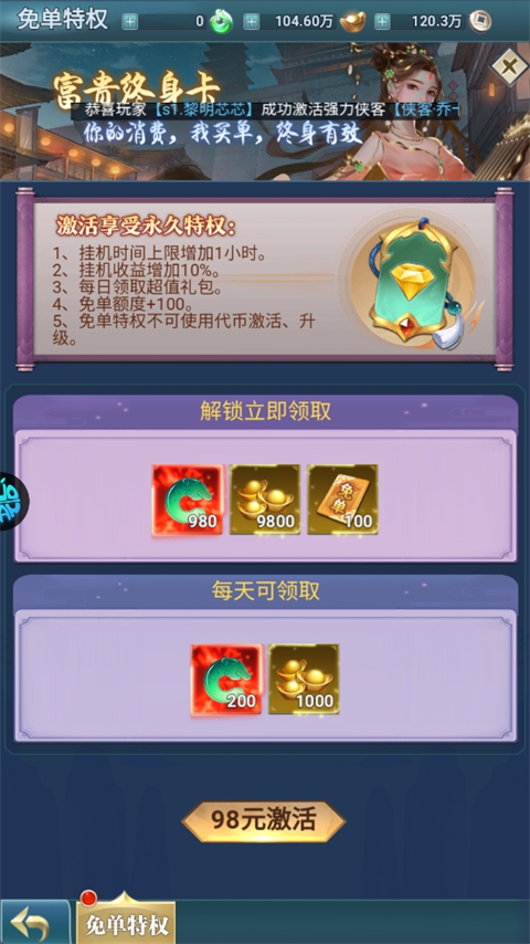 免单特权:玩家每天可以享受一定金额的免单特权,这在一定程度上减少了玩家的经济负担,增加了游戏的趣味性。