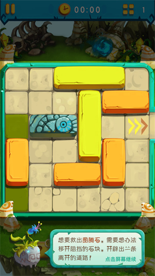 4、游戏中,玩家需要上下左右滑动石块将图腾石救出;