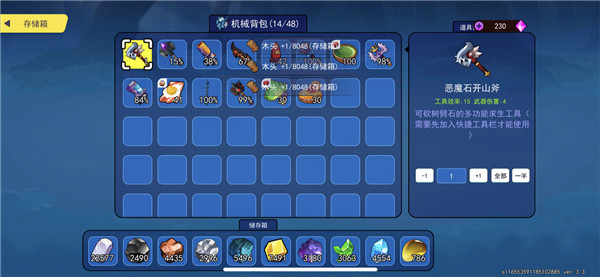 6、一开始做两个储存箱 然后换青铜箱(性价比最高) 后期直接过渡到机械箱,装备也是 青铜直接过渡到机械(铁稀缺 金生产慢)