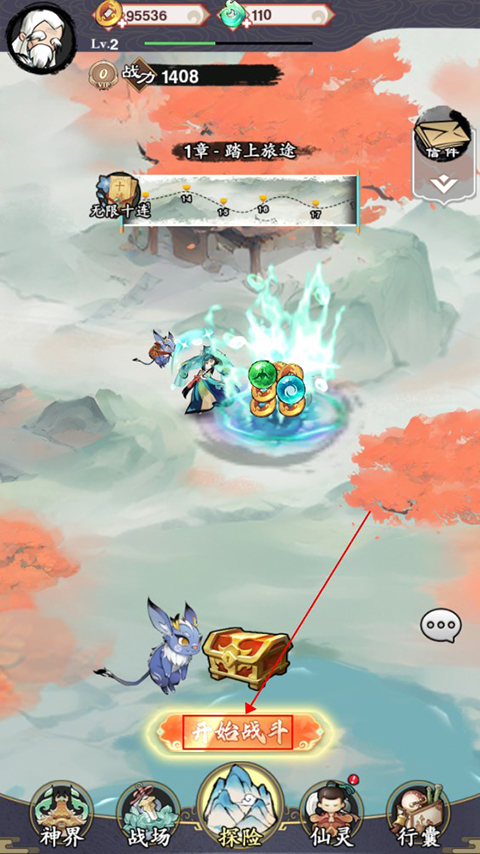 2、之后就可以踏上战斗旅途啦,点击下方开始战斗即可冒险闯关。