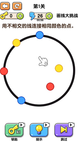 2、进入游戏,玩家只需要将两个相同颜色的点用不相交的线连起来就可以了。