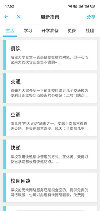 1、在注册界面进入迎新指南,可以了解生活和学习知识;