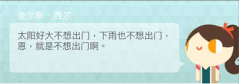 查尔斯.西尔:「太阳好大不想出门,下雨也不想出门,恩,就是不想出门啊。」
