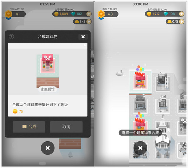 当你经常在某个方面消费,而让某种建筑过多时。通过合成建筑,让建筑升级,通过建筑的升级来反馈你在某个方面的花销。此外,你还可以招募市民、游客去执行相关的工作,从而获得金币进一步发展城市。