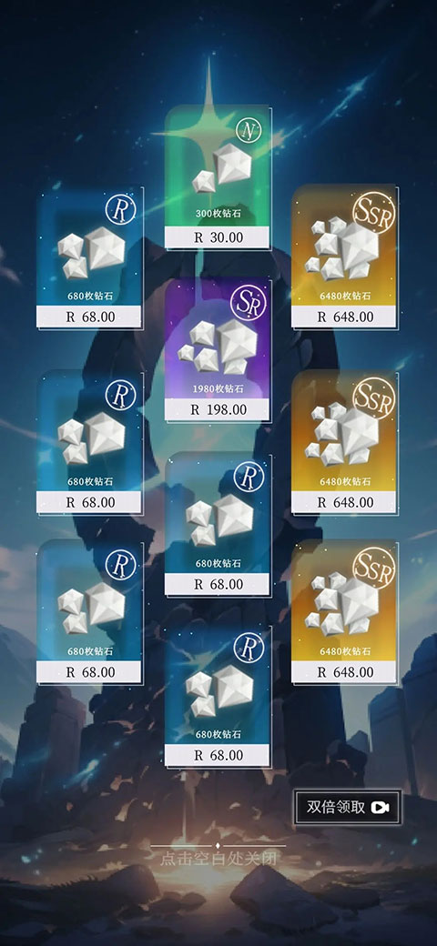 钻石主要获取途径目前有两种,第一种是通过抽卡氪金获取,每分钟可以免费单抽一次,每八小时可以免费十连一次。如果不想等待八小时呢,也可以通过看广告的形式进行钻石获取。