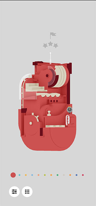 6、通关成功后顶部上就会出现红旗标志,底部的彩色图标可以切换别的关卡。